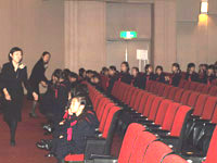 | おうちの方、在校生、そして先生が見守る中、大講堂に入場しました。 |