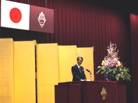 | 校長先生から、三羽の鶴の校章を授与されました。 |