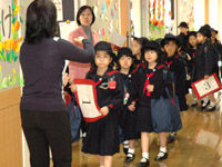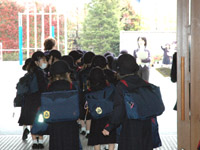 | クラスのお友だちと別れ、これから通学班に分かれます。 |