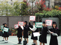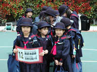1日も早く新入生が学校に慣れてもらうために、まず、1・2年通学班編成を行います。その翌日、全校通学班下校を実施します。当日は、全校児童がそれぞれ方面別に分かれて校庭に集まり、班長さんが声を掛け人員確認をします。全40班の確認が済むと班長さんを先頭に2列に並んで下校しました。新入生は、はじめての電車通学で不安を感じているかもしれませんが、班のお姉さんたちのおかげで安心して下校できます。 |