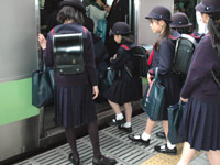 | 班長さんは、電車に乗るときも安全確認を含めて班員を見守ります。 |