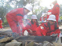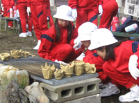 煙が立ちこめる中、協力しあって上手く焼き上げました。