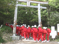 2日目、標高2530mの蓼科山山頂にむけ、一の鳥居を出発。
