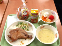 | 教室に戻ると会食の時間となりました。今日はクリスマスの特別メニューです。 |