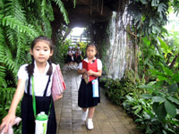 同じ温室のなかでも滝の周辺は、ひんやりとした涼しい空気が流れていました。