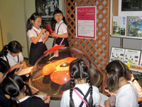 自分たちの顔の何倍も大きい花の模型に大歓声をあげました。