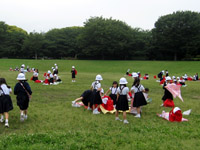 見学後、芝生にシートを広げてお友だちと楽しくお弁当をいただきました。