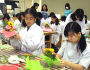 6年生はこの日、松組が和菓子作り、竹組がフラワーアレンジメントの制作、梅組がかなば細工に挑戦しました。皆のまなざしは真剣そのもので、各組ともに作品の仕上がりは上々でした。 |