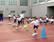 4年生はスポーツの秋にちなみ、広いグラウンドでクラス対抗の障害物競走とどろけいを思い切り楽しみました。障害物競走は竹組、どろけいは梅組が優勝しました。 |