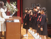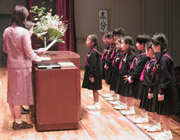 11月の誕生会では、誕生者をお祝いして『いろんな木の実』を元気よく歌いました。誕生会後には、6年生図画コンクールと学園祭表紙絵コンクール入賞者の表彰式がありました。 |