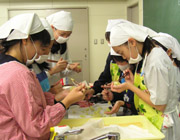 今年度2回目のレクリエーションデーでは、松組がかなば細工、竹組が和菓子作り、梅組がフラワーアレンジメントに真剣に取り組みました。それぞれ、みごとな出来映えでした。 |