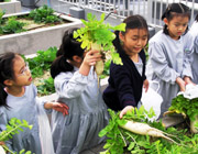 2年生は、生活科の単元として野菜の栽培をしています。夏休み前は枝豆を、9月からは大根を種まきから始め、観察しながら大事に育てました。おかげでこんなにおいしそうな大根が収穫できました。 |