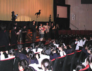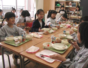 | 寒い冬を元気に過ごせるようにと行っている冬至会で、影絵人形劇を鑑賞しました。どの作品もライティングの妙によるシルエットの美しさと、音響とが相まって感動を呼びました。冬至会の後は、児童が楽しみにしていたクリスマスメニューの会食となりました。ローストチキンやクリスマスパンに大喜びし、どのクラスもおいしそうな笑顔が見られました。 |