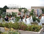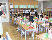 2年生は生活科の単元で、校舎屋上の菜園で野菜作りの観察学習を行ってきました。春先に蒔いた大豆が青々とした立派な枝豆に生長し、7月の中旬になって収獲を行いました。新鮮な枝豆は家に持ち帰り、ご家族を喜ばせました。秋には大根作りが予定されています。