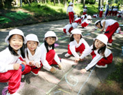 道路いっぱいに、お友達と仲良くお絵かき。