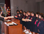 11月の誕生者をお祝いした後、学園祭プログラム表紙絵の入賞者の表彰式を行いました。小学校・中学校・高等学校から応募された52作品の中で、最優秀賞も含め10名が入賞しました。 |