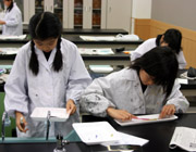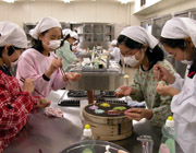 竹組は「紅の葉」と「野遊び」という、この季節にふさわしい2種類の和菓子を作りました。細かい作業に少し緊張しながらも丁寧に作業を進める姿は、まるで和菓子職人のようでした。お茶と一緒にいただいたお菓子は格別おいしく感じられました。 |