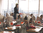 休み時間に地震発生を伝える緊急放送が流れ、児童たちはすばやく近くの教室に入り、そして机の下に避難しました。先生の指示をよく聞いて、落ち着いて校庭に集合することができました。 |