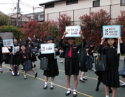 同じ方面ごとに分けられた、全校通学組合班での初めての下校が行われました。校庭で各班ごとに集合し、新1年生のお母さま方も一緒に下校しました。班長さんを先頭に、上級生が1年生をやさしく導きながら、無事に全員が下校しました。 |