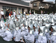 10月の避難訓練は、理科室から火災が発生したとの想定のもとで行われました。火災発生の緊急放送と同時に各教室では児童たちが直ちに防災頭巾を被り、先生の指示に従って校庭に避難しました。南側の非常階段は理科室隣接のため、いつもとは異なる避難経路を辿ったクラスもありましたが、全員無事校庭に集合することができました。 |