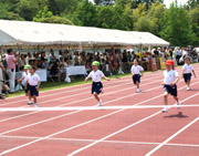 1年生の種目は、徒競走、玉入れ、低学年クラス対抗リレー、全校大玉ころがし、ダンス「お料理行進曲」の5種目でした。