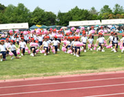 <4年生>整然とした隊形移動が見せ場のマスゲーム。
