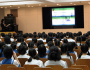 「道徳」の時間に、5・6年生の安全教室が行われました。目白警察署の方より、身近になったインターネットのハイテク犯罪にまきこまれないために、ルールとマナーを守る大切さについてお話をうかがいました。また、楽しいメールやインターネットを使うには「おもいやり」を大切にし、「ネチケット(インターネット上のエチケット)」を守ること、困ったことがおきたらひとりで悩まないで、お家の人や先生に相談することも教えていただきました。