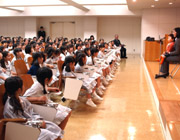 1・2年生を対象に、保健の先生から歯磨き指導がありました。染め出し粉を使って磨き残しのある部分をじっくり観察した後、先生から教えていただいたブラッシングの方法で丁寧に汚れを落としていきました。乳歯から永久歯に生え変わりつつあるこの時期に正しいブラッシングを覚え、一生使う歯を健康で丈夫なものにしていきましょう。 |