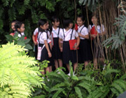 2年生が校外授業で夢の島熱帯植物館へ行きました。小笠原や西表島の植物や生き物についてビデオで学習したり、さまざまな熱帯植物を観察して色鉛筆でスケッチをしました。 |