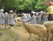 1年生の校外授業は上野動物園へ行きました。ゾウやニホンザルを見学した後、「こども動物園」で3つのグループに分かれ、動物とのふれあいを体験しました。最初は動物を触ったことがなく、とても緊張していた子もいましたが、慣れてくると夢中になり、ヤギにエサをあげたりお膝の上のモルモットをなでたりして、たくさんの動物と出会い、やさしくふれあうことができました。 |