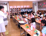 2年生が川村幼稚園年長組を縁日あそびにお招きしました。生活科の授業で準備をしてきた縁日あそびはゲームの内容や名前、お土産の景品などお客さんに楽しんでもらえるよう色々工夫をしてきました。15箇所の縁日では、年長さんに優しく説明をして、手作りのゲームを体験してもらいました。頑張ってたくさん作った景品も喜んでもらえ、嬉しそうな2年生でした。 |