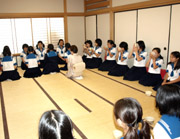 〜初めての試みを実施〜竹組は茶道の先生より所作の基本を習う。