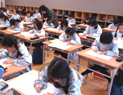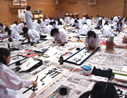 新年恒例の伝統行事である書き初め大会が行われました。1・2年生は硬筆、3年生以上は毛筆となり3年生は半紙、4年生からは条幅、皆冬休み中の練習成果を発揮しようと集中して取り組みました。みぞれ混じりの外とは対照的な熱気いっぱいの大会となりました。