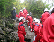 蓼科へ向かう途中、寄居町にある「さいたま川の博物館」で学習を行い、長野県横岳での登山と山荘周辺の川での上流探検、都会では見ることのできない夜空の星の観察など、蓼科の自然を満喫した3泊4日となりました。現地では天候に恵まれ、3日目はりんご園を訪ね、農家の方からりんご栽培についてお話をお聞きしました。 |