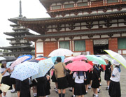 6年生が奈良・京都への修学旅行に行ってきました。今年は3泊4日の行程のうち、奈良の宿泊を2泊に増やし、歴史的建造物や国宝の数々に感動を覚えるとてもよい経験となりました。それぞれの見学地では熱心にガイドさんの話に耳を傾け、バスの中や宿では見聞きしたことがらを丁寧にまとめる姿がありました。 |