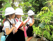 春の校外授業で夢の島熱帯植物館を訪れました。小笠原諸島や西表島、熱帯地域の生息をビデオで学習しました。ギャラリーでは、暗闇のなかで幻想的な緑色の光を放っている夜光茸、世界最大の花ラフレシア・アーノルディ、ウツボカズラなどの食虫植物に大歓声をあげました。ドーム型の温室にはたくさんの南国の果物が生っており、その中でも一際香りを放っていたパイナップルの甘い香りを楽しみました。 観察記録へ