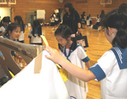 3年生の理科の授業では、各クラス班ごとにアゲハチョウの幼虫を大切に育て、その様子を観察してきました。幼虫からさなぎへ…そしていよいよ羽化をさせるときがきました。約50℃のお湯をカップに入れ、そこにさなぎの入った容器を浮かべて羽化をする瞬間を待ちました。しばらくすると、教室のあちこちから、「先生、羽化したよ。」と声が上がり、みんな真剣な表情でアゲハチョウを見守りました。羽化してから飛べるようになるには約2時間かかります。それぞれ観察カードにスケッチをしたりその様子をまとめたりしました。そして午後の理科の授業でアゲハチョウをベランダから空に放しました。