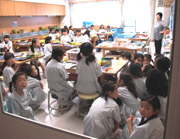 異常を知らせる音楽放送が流れた時は、静かに歩いて、教師がいる最寄りの教室に入ることが約束されています。防犯訓練では、休み時間に実際に音楽放送を流し、慌てたり騒いだりせずに安全な場所へ避難できるかを訓練しました。児童が避難した教室では、中から出入り口を施錠し、静かに次の放送を待つことができました。 |