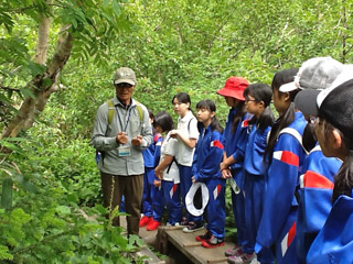 国営アルプス公園ではガイドさんがていねいに案内をしてくれました。 |