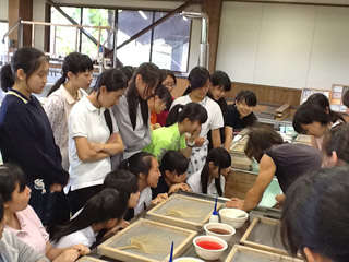| 4日目は立岩和紙の里にて紙すき体験でうちわ作りをします。 |