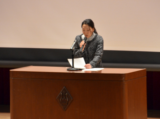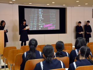 大講堂での立候補者の立会演説会の後、新年度の役員を決定する選挙が行われました。 |