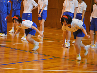 けがを予防するためのウォーミングアップをしたあと、クラウチングスタートの練習をしました。 |