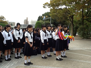 4日目は、広島へ移動し、平和記念公園で千羽鶴を奉納したあと、班別でフィールドワークを行いました。