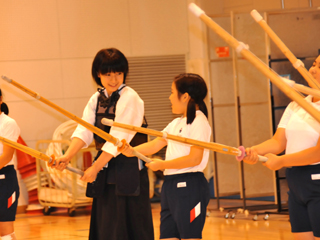 竹刀には、振りかぶり方や打ち込み方などのたくさんのポイントがあることを教えてもらいました。 |