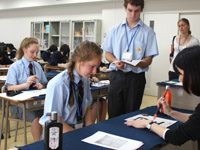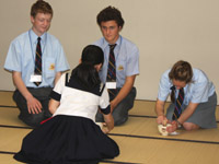 コルベカレッジの11年生に、川村中学・高等学校の1日を体験してもらいました。生徒が校内の案内役を務めたり、授業で交流学習を行うなか、お互い積極的に会話をすることができました。 |