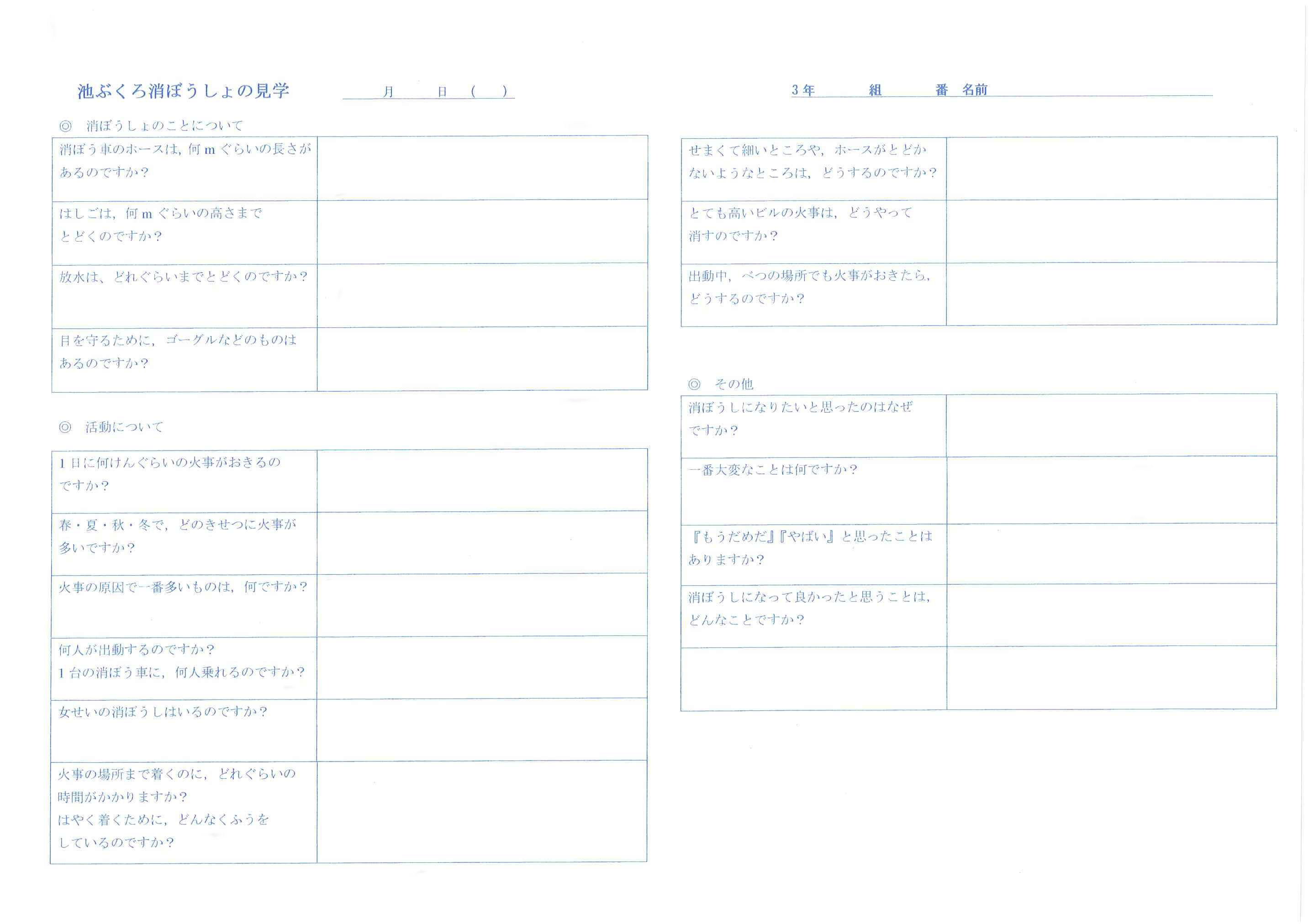 3年生 社会見学(池袋消防署・池袋防災館)平成23年2月4日