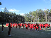 | 朝は全員で朝礼を行いました。少しひんやりする空気に、目が覚めます。 |