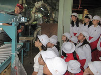 | りんご園と出荷作業場を見学しました。農家の方が丹精こめて育てたりんごが市場に出ていくまでを学びました。 |