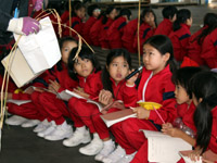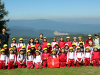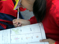 春より1泊長い3泊4日の秋の蓼科学習では、春に植えた稲の成長を見学し、自分の手で刈り取り、その稲を観察します。そして、山荘の豊かな自然の中でフィールドビンゴを行ったり、冬はスキー場となる蓼科牧場の斜面を登ったり、植物の観察とスケッチも行いました。 |