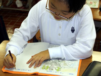 | まとめの学習では、作業帳や絵日記を書いたり、その日のテーマに沿った詩を作ったりしました。その他にも、葉書を書いたりして過ごしました。 |